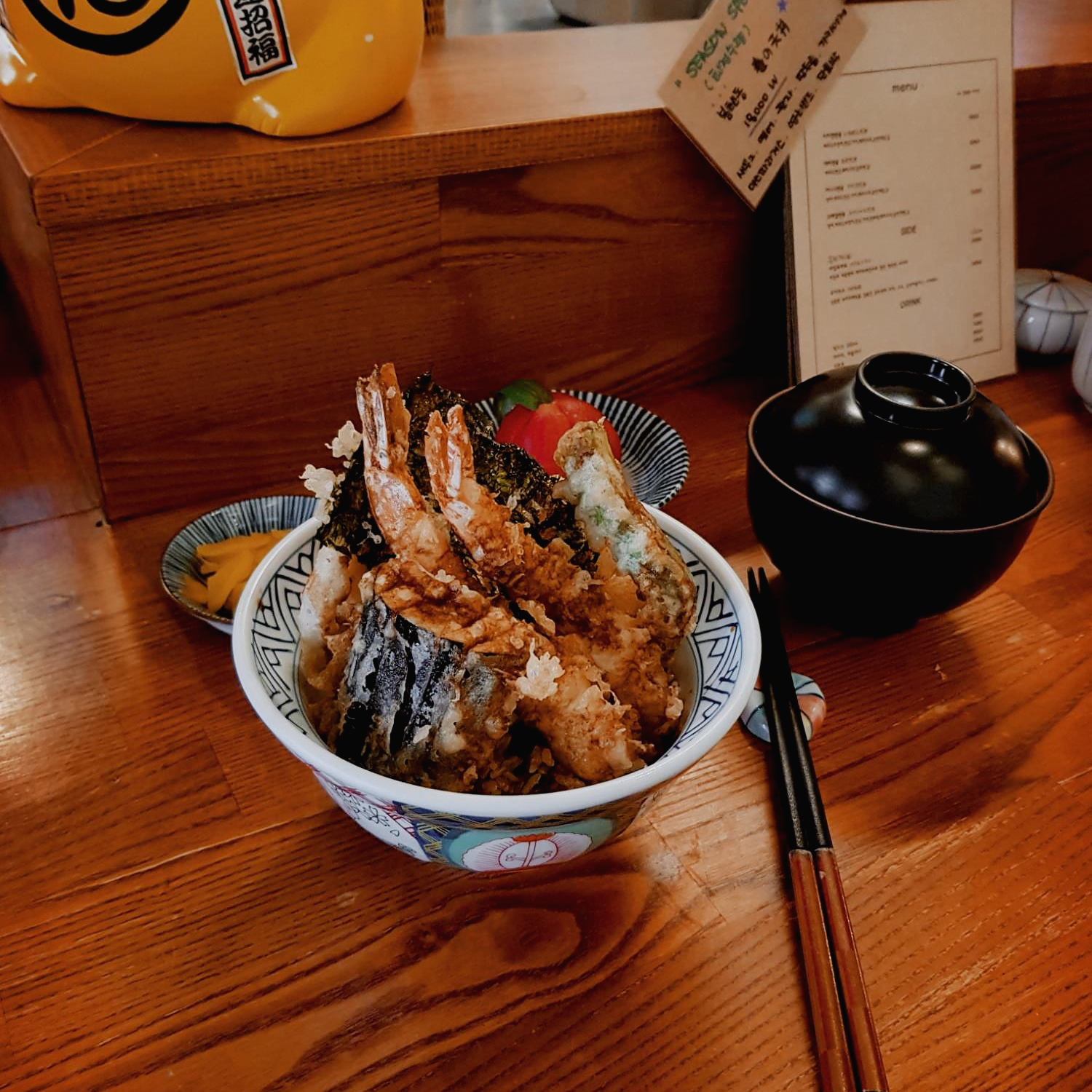 텐동(=덴뿌라 덮밥=튀김 덮밥) 맛집으로 유명한 곳.