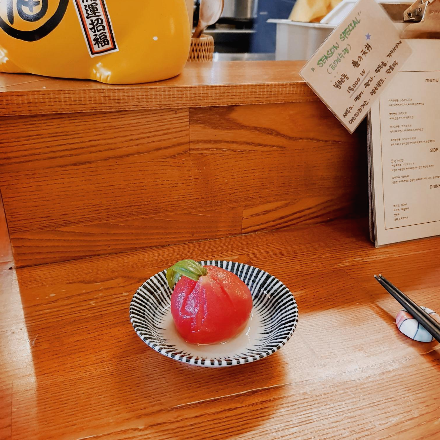 텐동에 바질토마토(토마토절임) 추가!