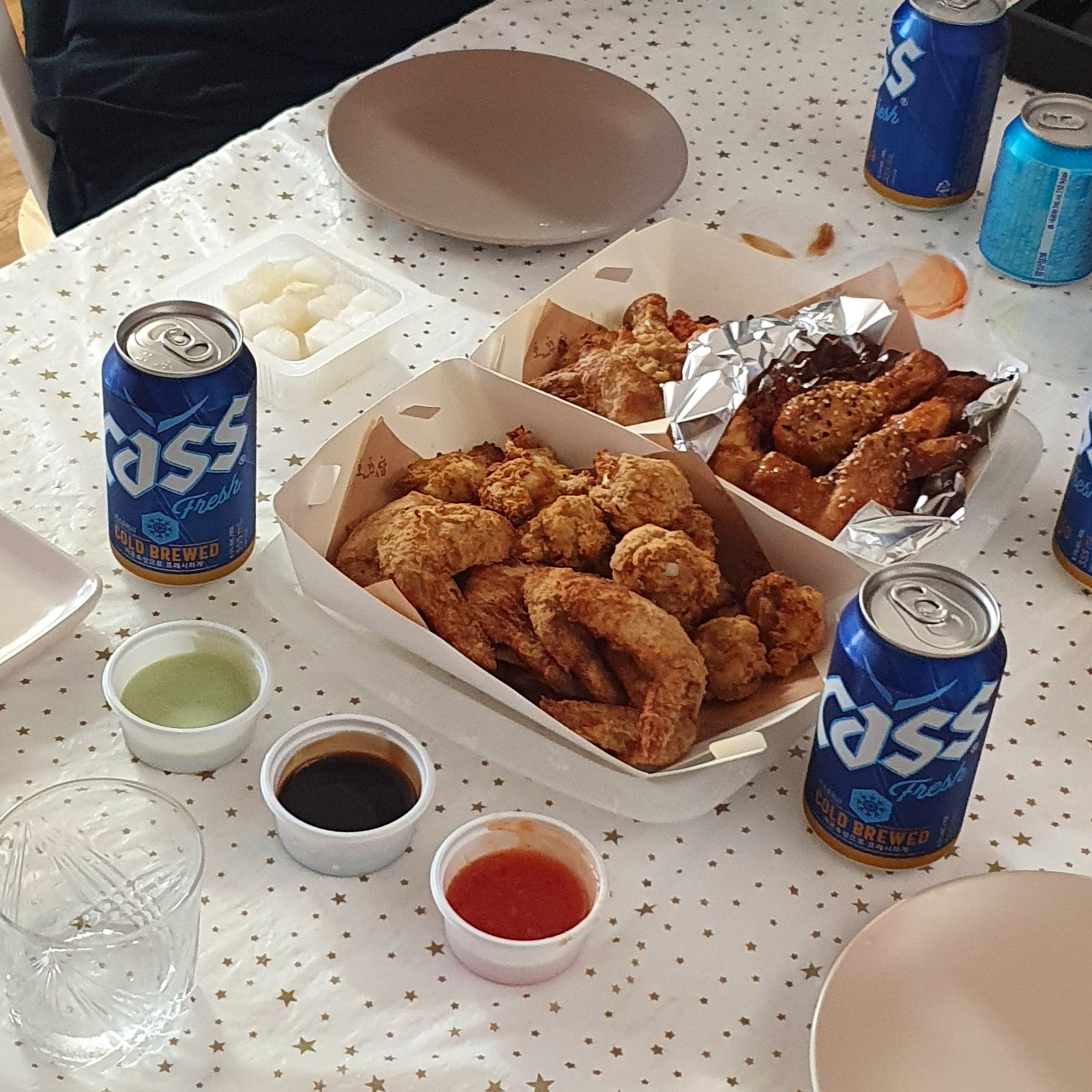 오꾸닭 크런치윙+카스 맥주...