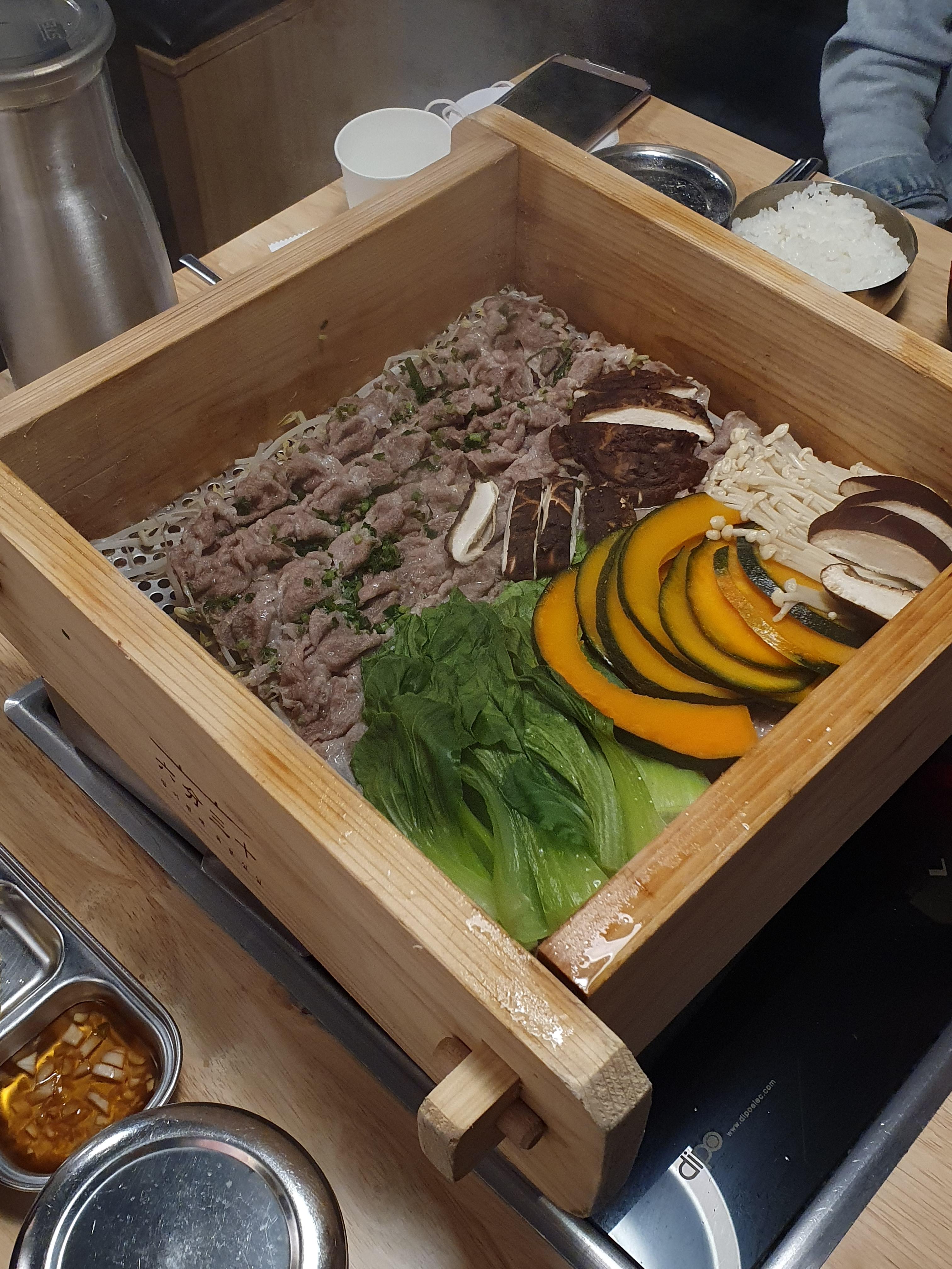 기름 쫙 빠진 담백한 고기와 야채를 소스에 콕 찍어 먹으면 완전 맛있다.
