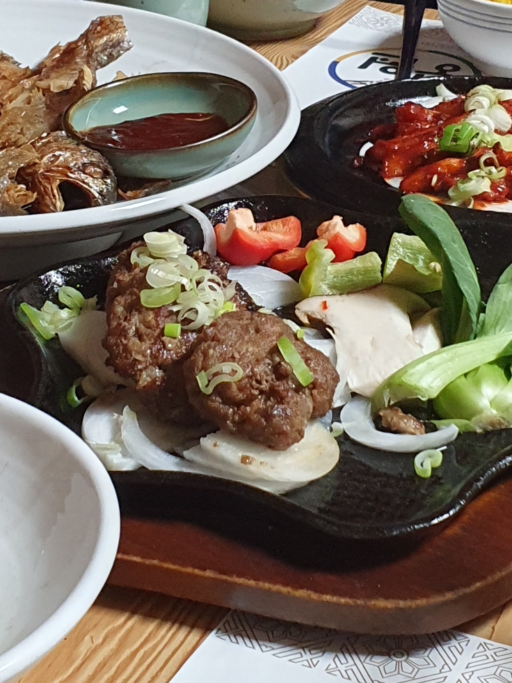 더덕구이, 떡갈비, 보리굴비가 메인인 상차림인데 나머지 밑반찬도 정갈하게 잘 나오더라.