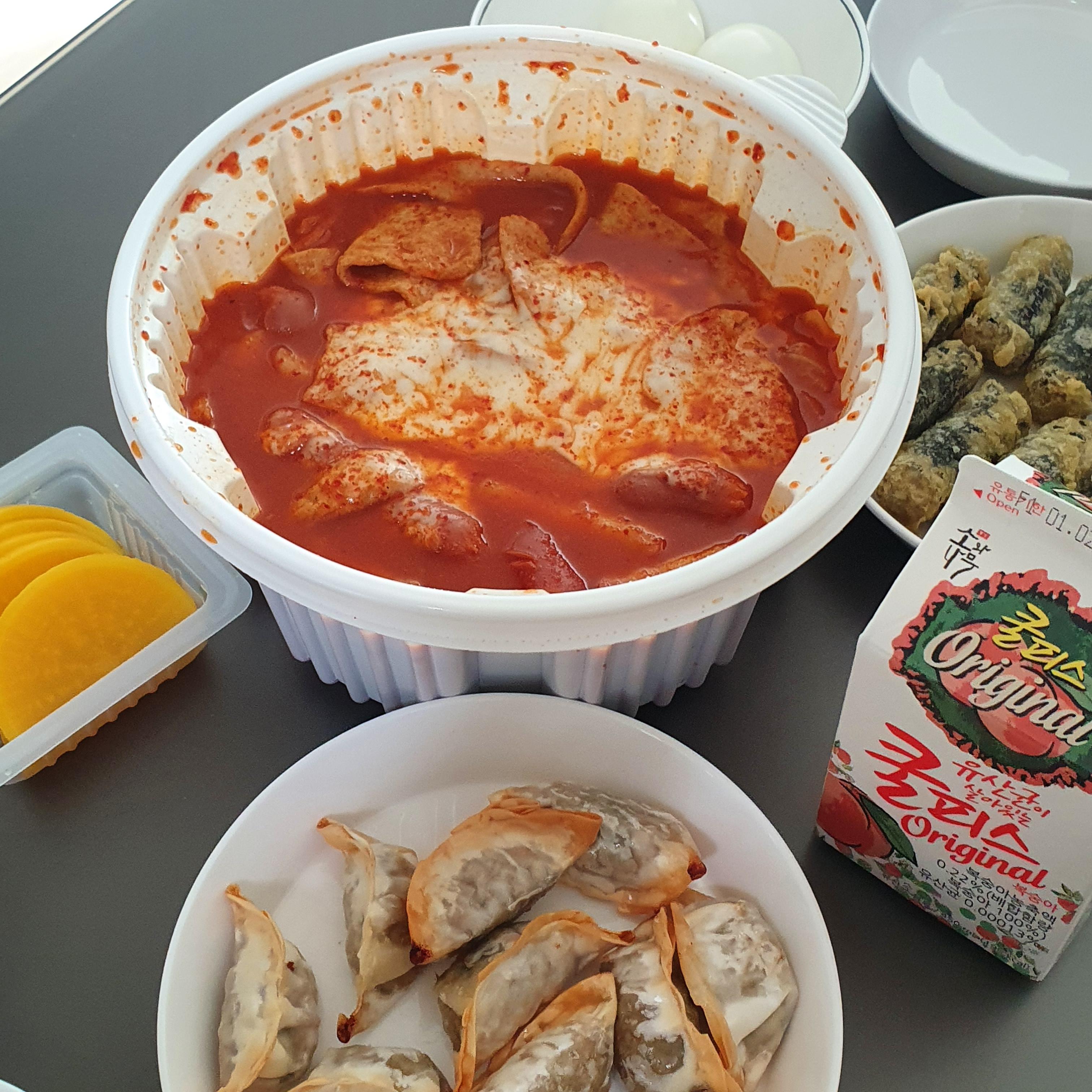집에 계란도 있고 김말이도 있고 만두도 있고 콜라도 있길래 엽떡에서 떡볶이만 시켰다.