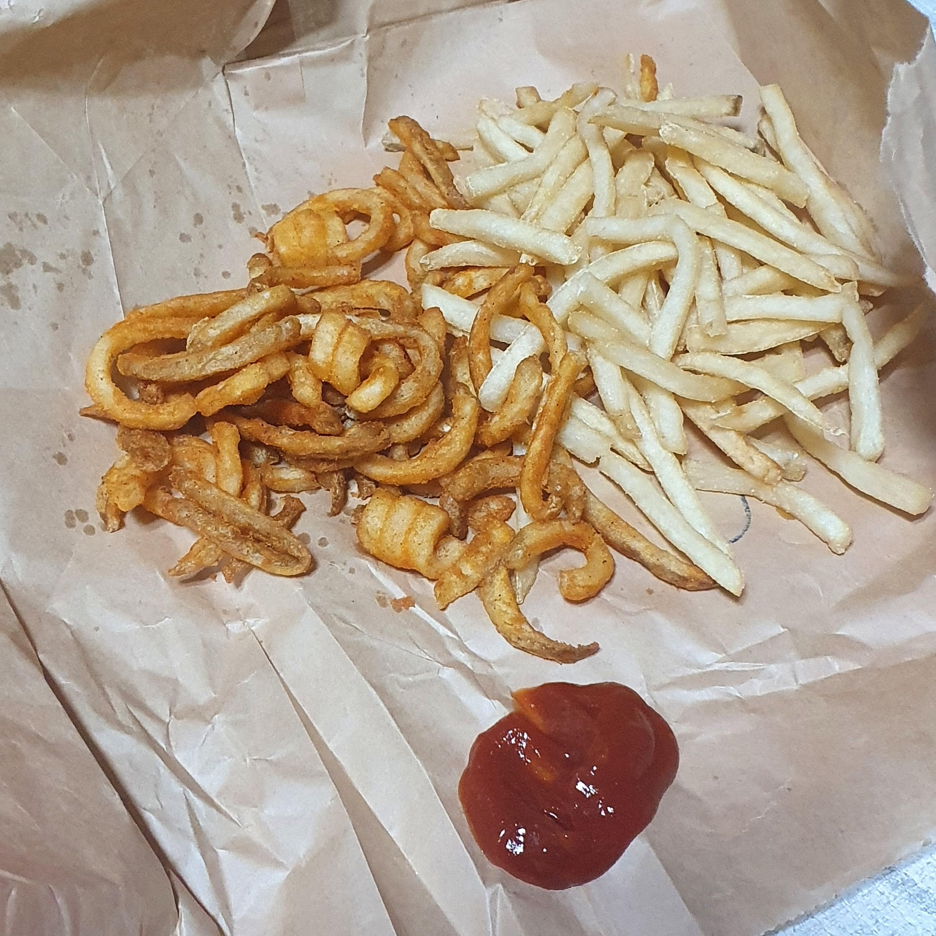 사진 찍기도 전에 반쯤 먹어버린 트리플치즈버거.