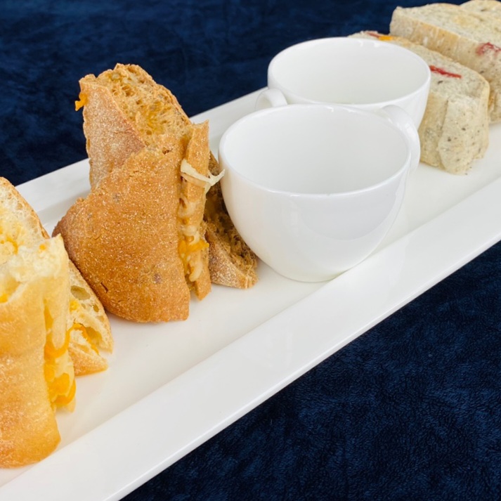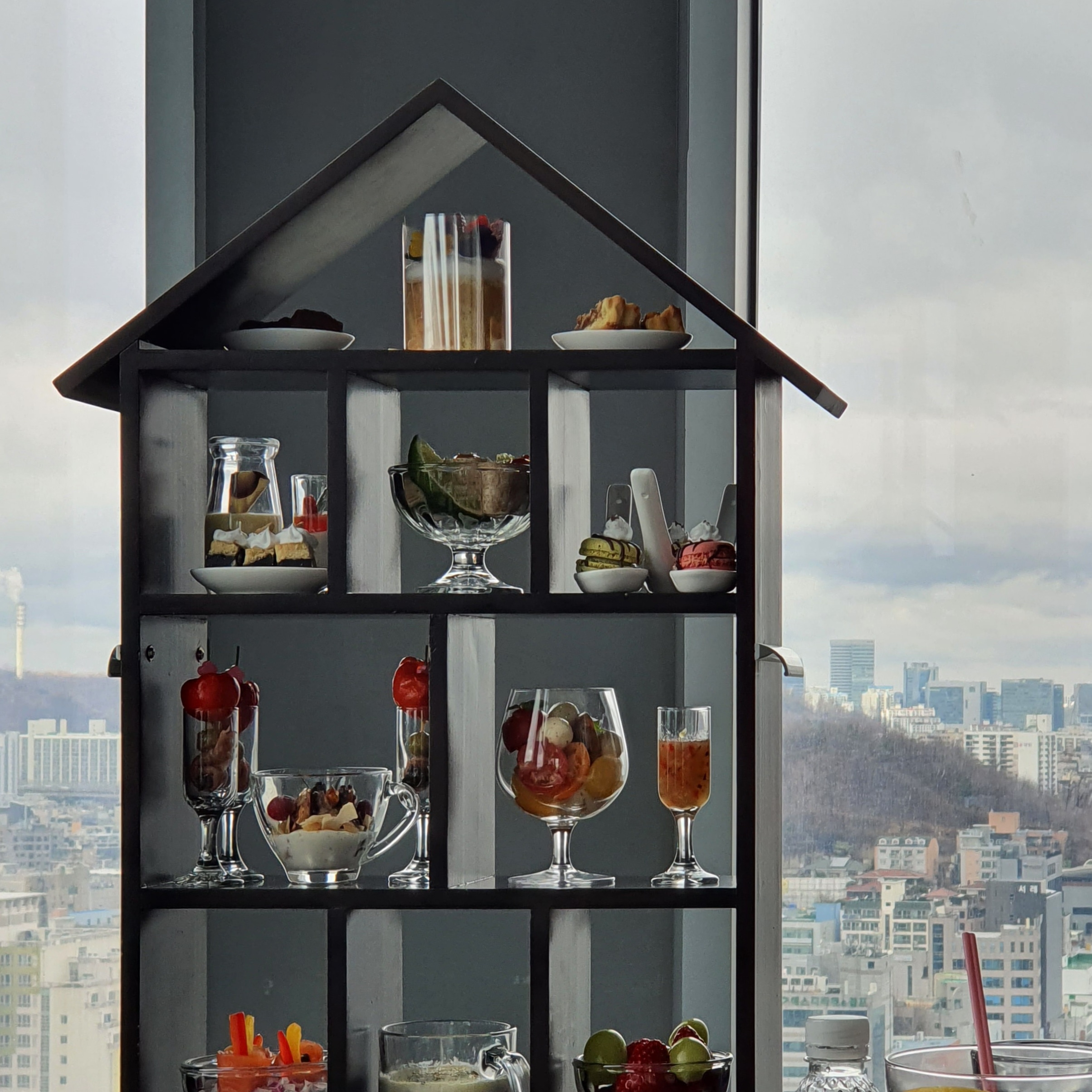 집 모양의 트레이에 등장한 애피타이저와 디저트.