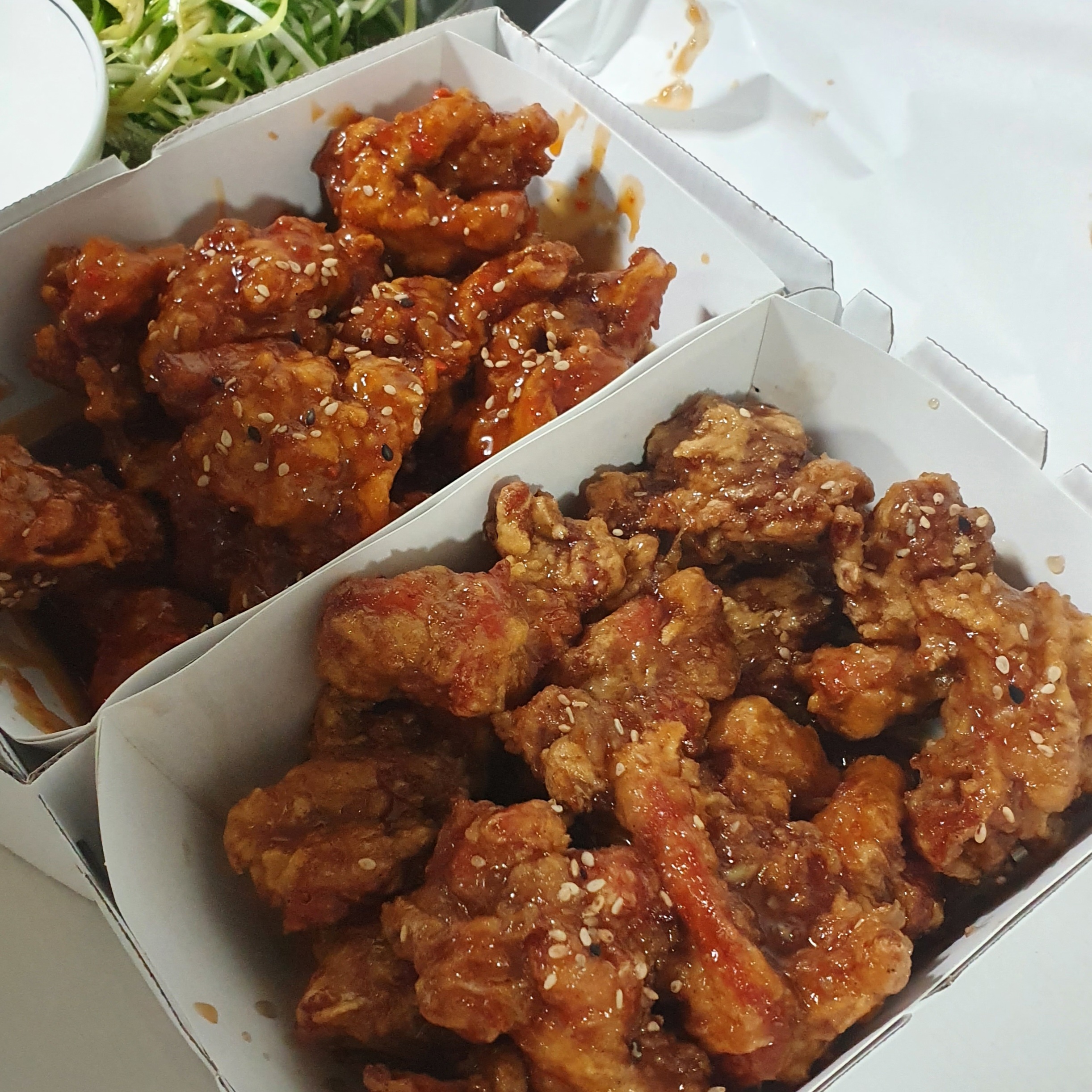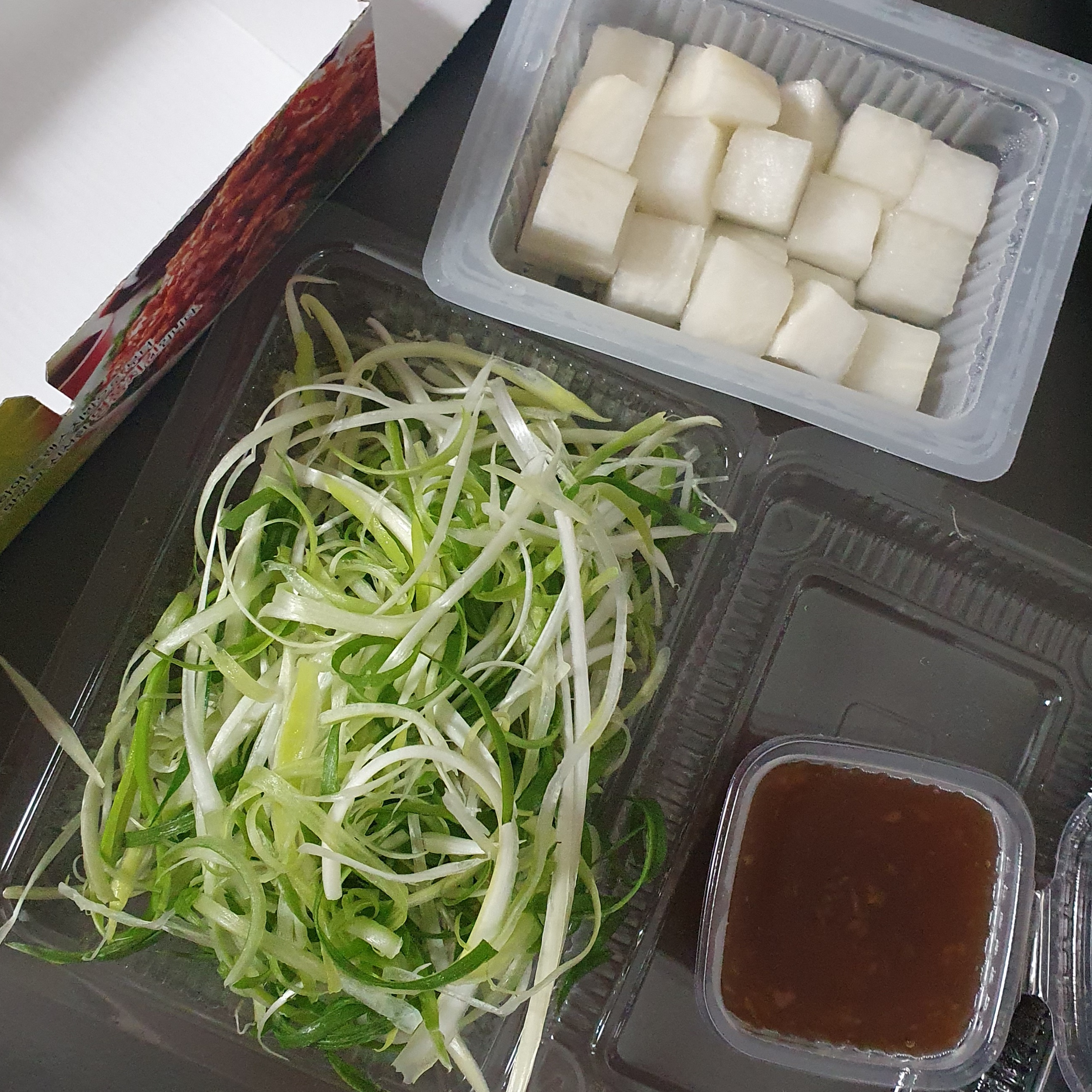 파 1팩은 겨자맛 나는 파닭소스를 뿌려줬다.