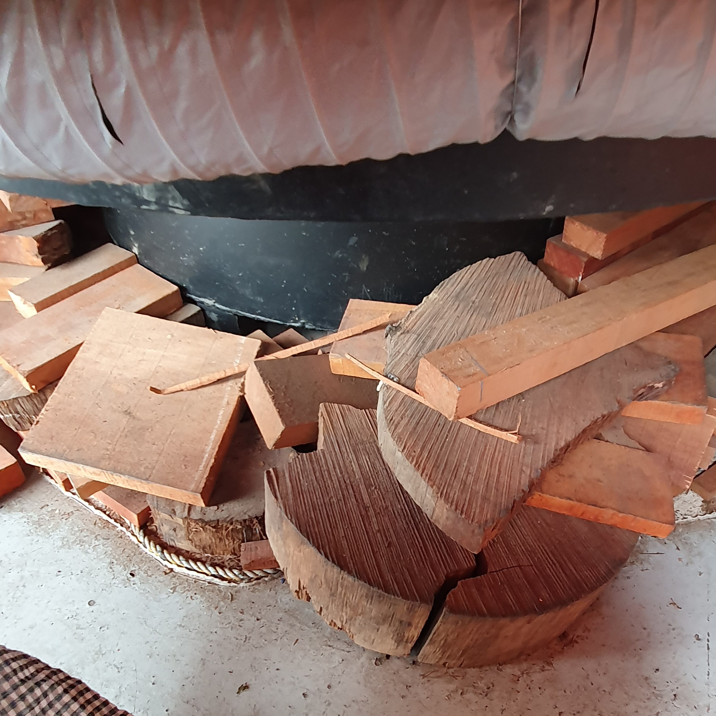 철판 밑을 보니 정말 장작들이 ㅋㅋㅋ