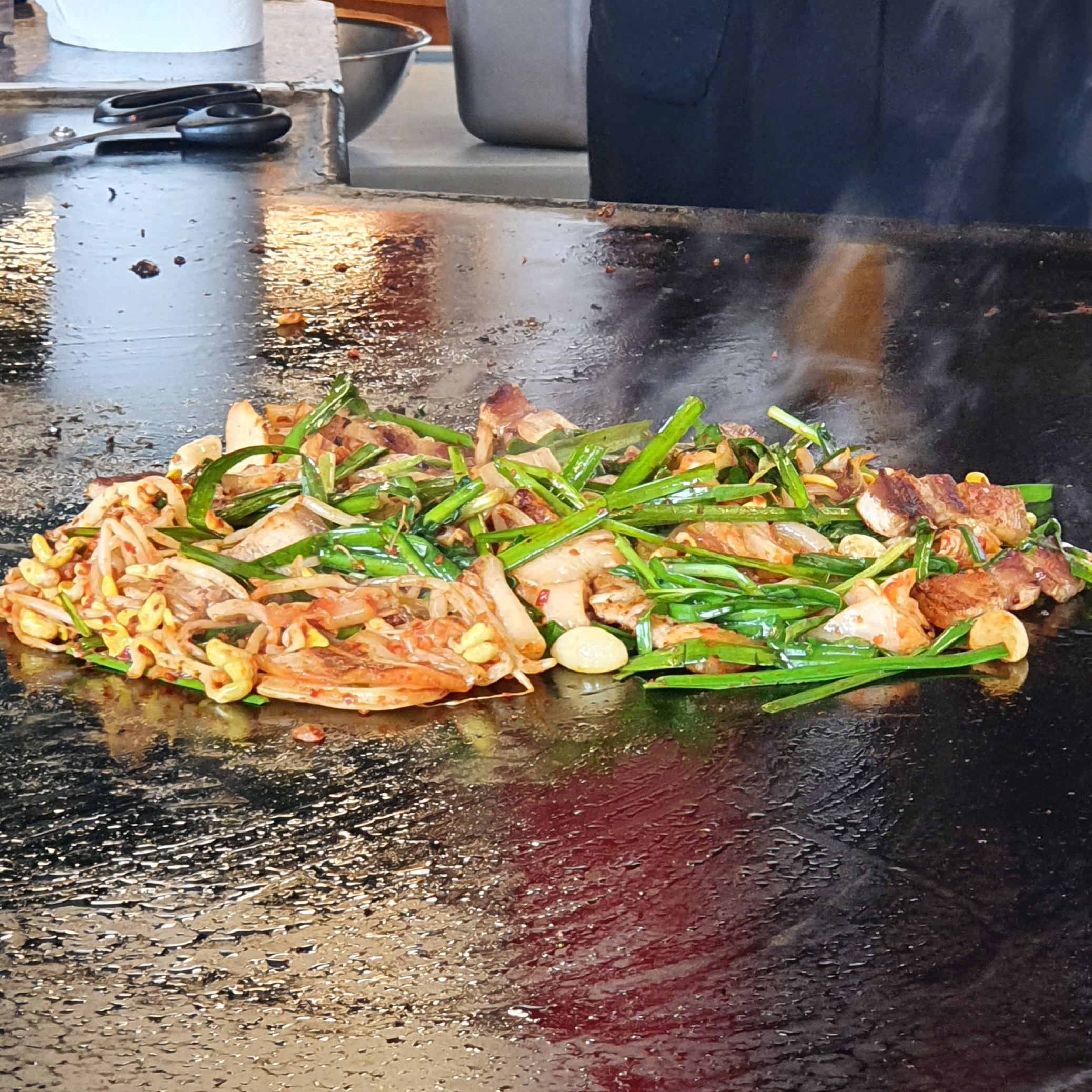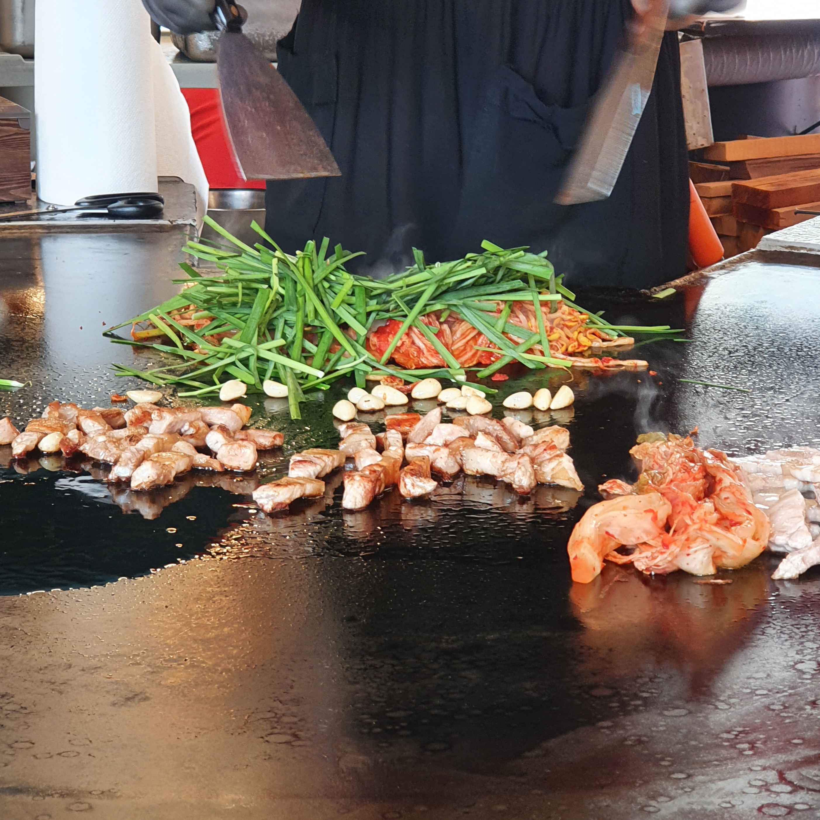 (여쭤보고 이렇게 철판에 올려서 먹기도 하고~)