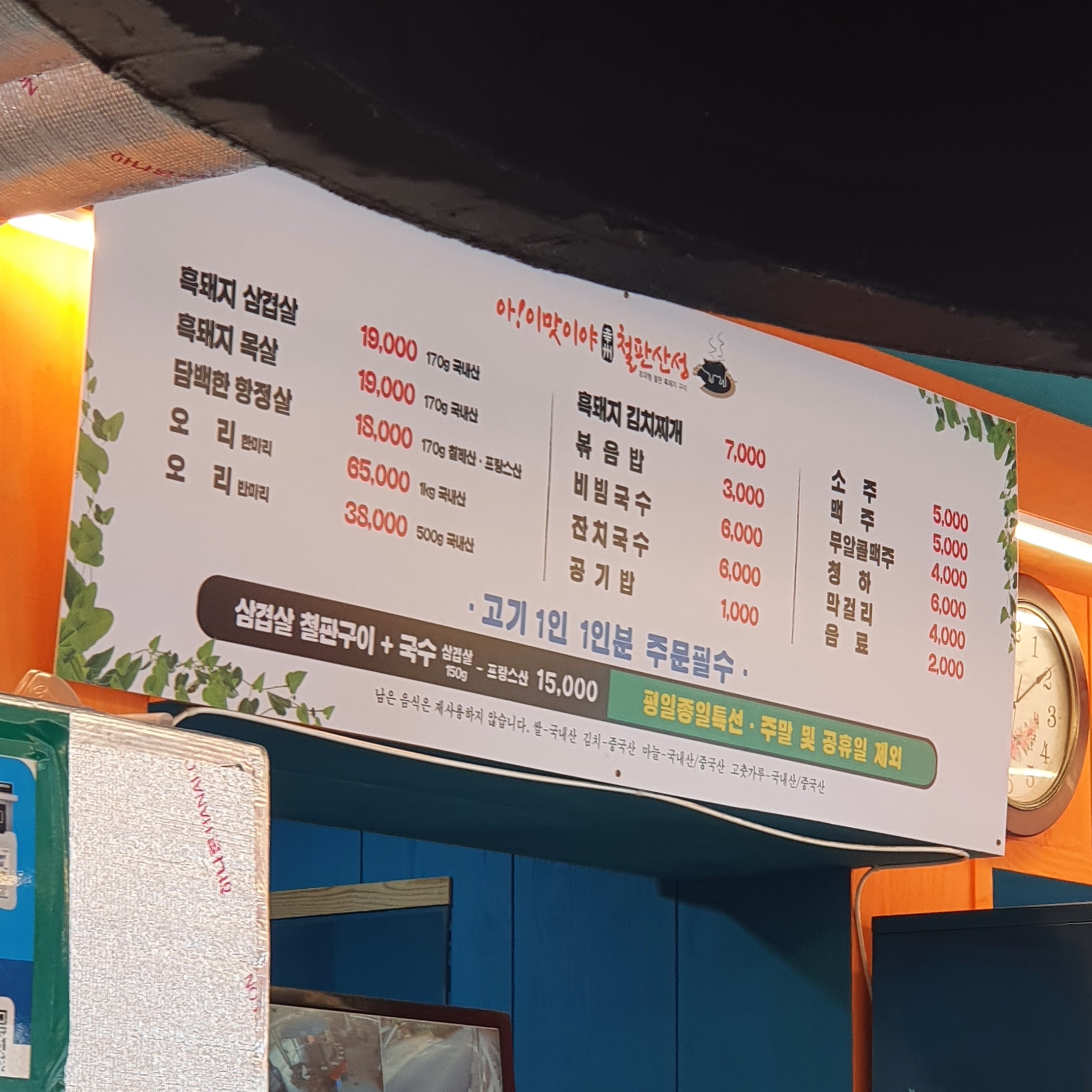 [ 아이맛이야 장작철판구이 본점 메뉴판 ]