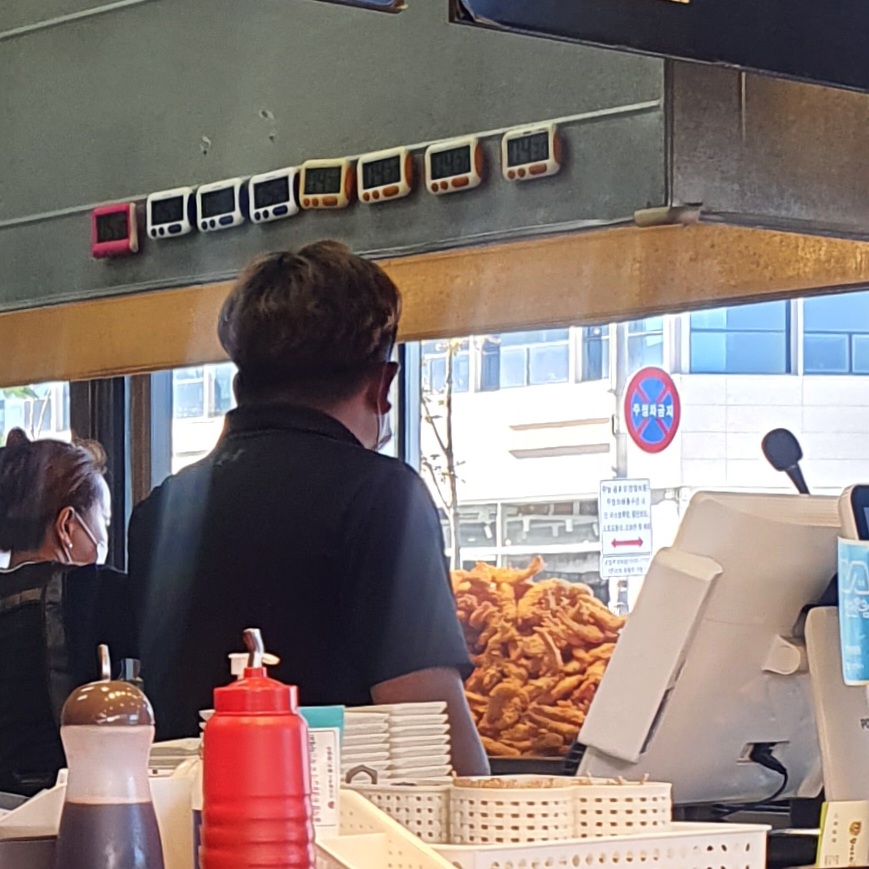 셀프바에서 간장소스, 칠리소스, 단무지, 산고추장아찌까지 가져와서 야무지게 잘 먹고 갑니다!
