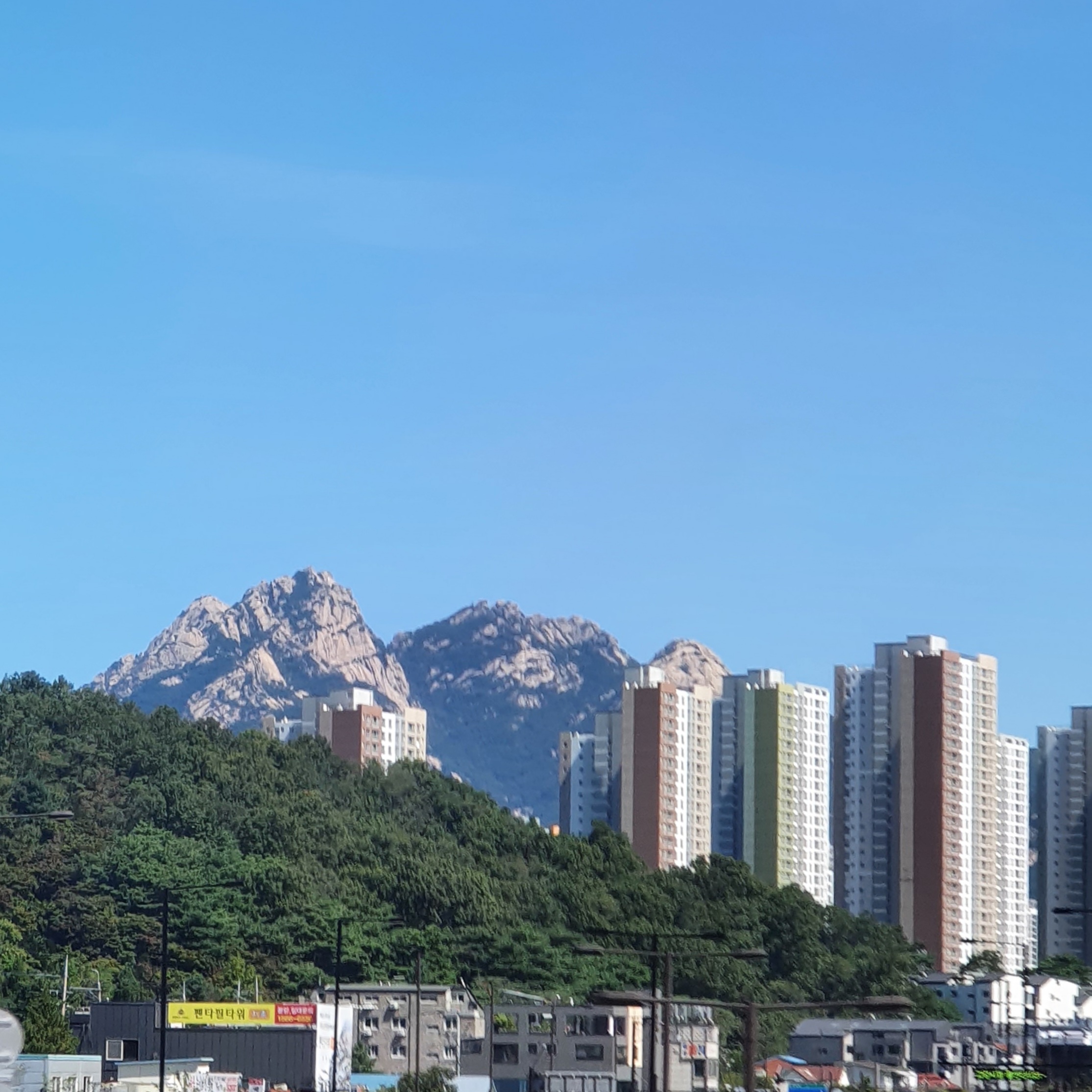 차 안에서 찍어본 북한산 뷰.
