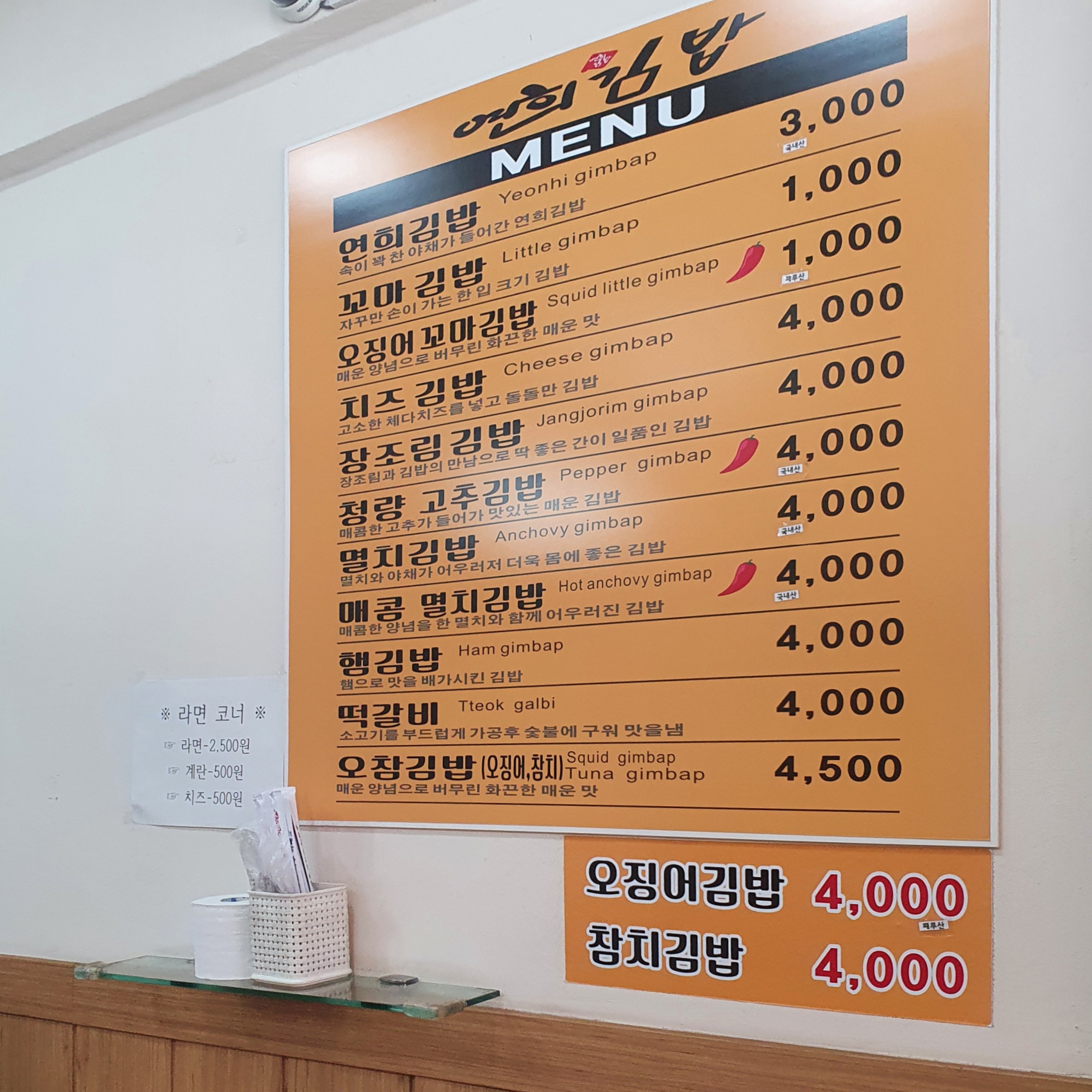 요즘 김밥 3천원이면 엄청 싼 거라쥬~