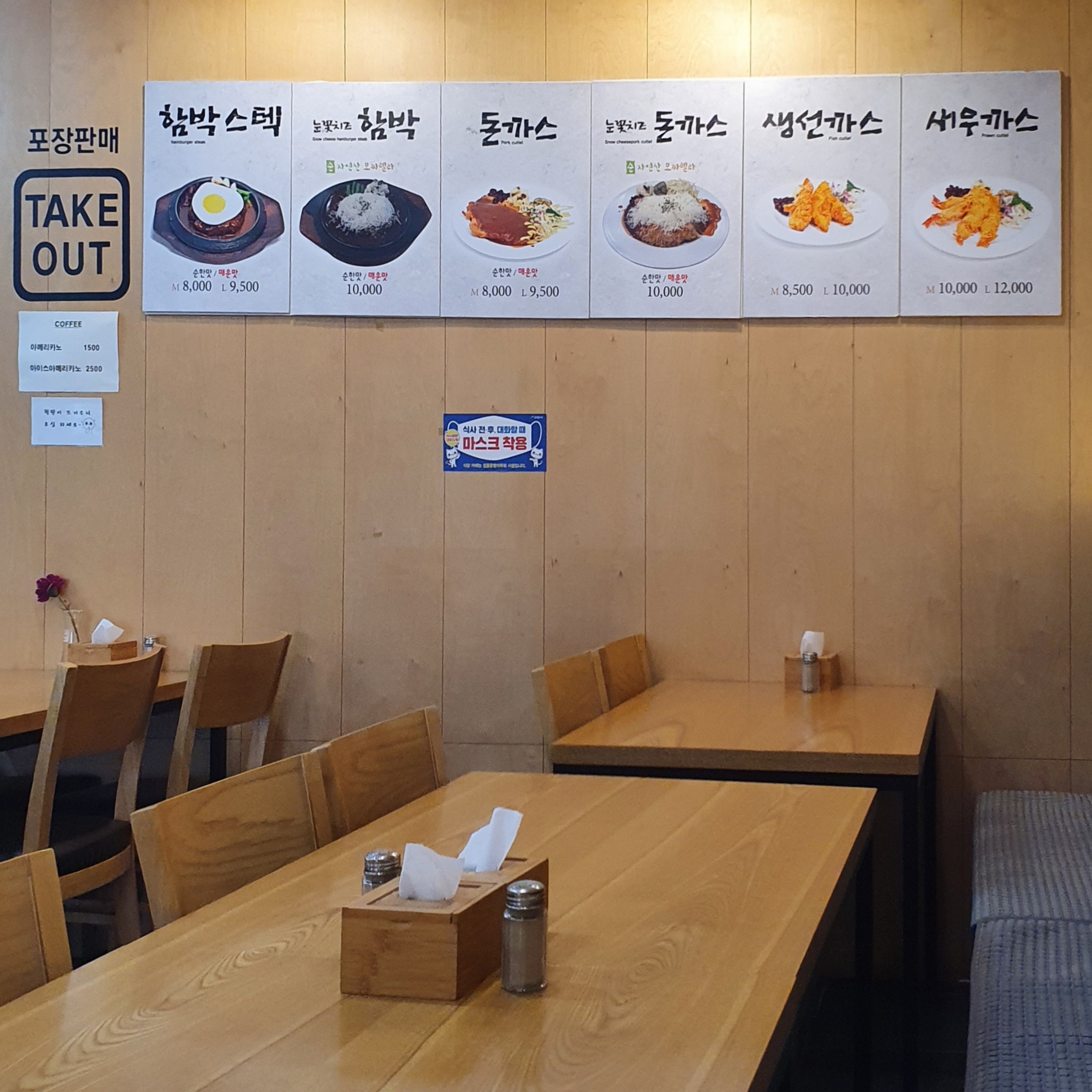 마침 동네에 함박스테이크 전문점인 정다래함박스텍이 있어 방문했다.