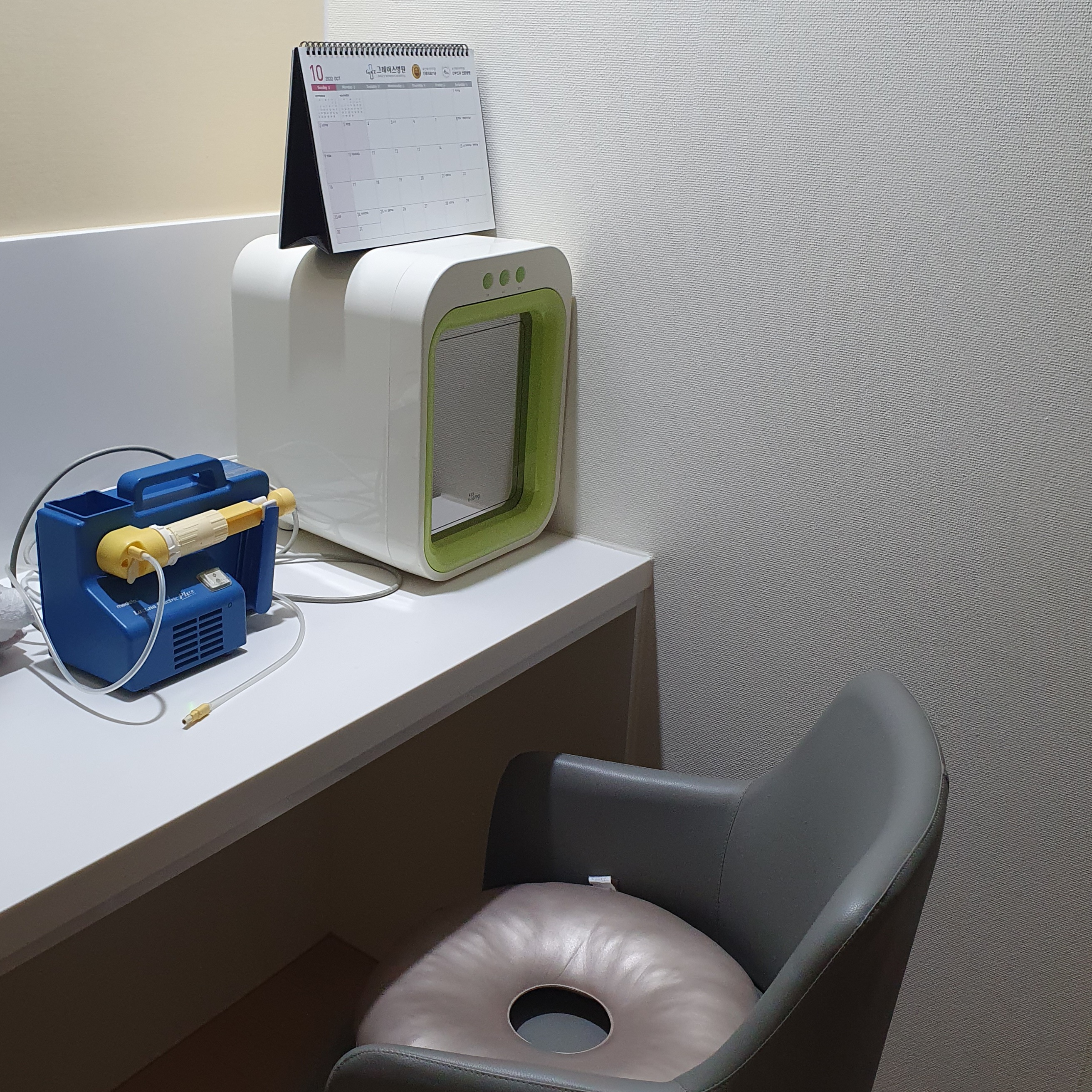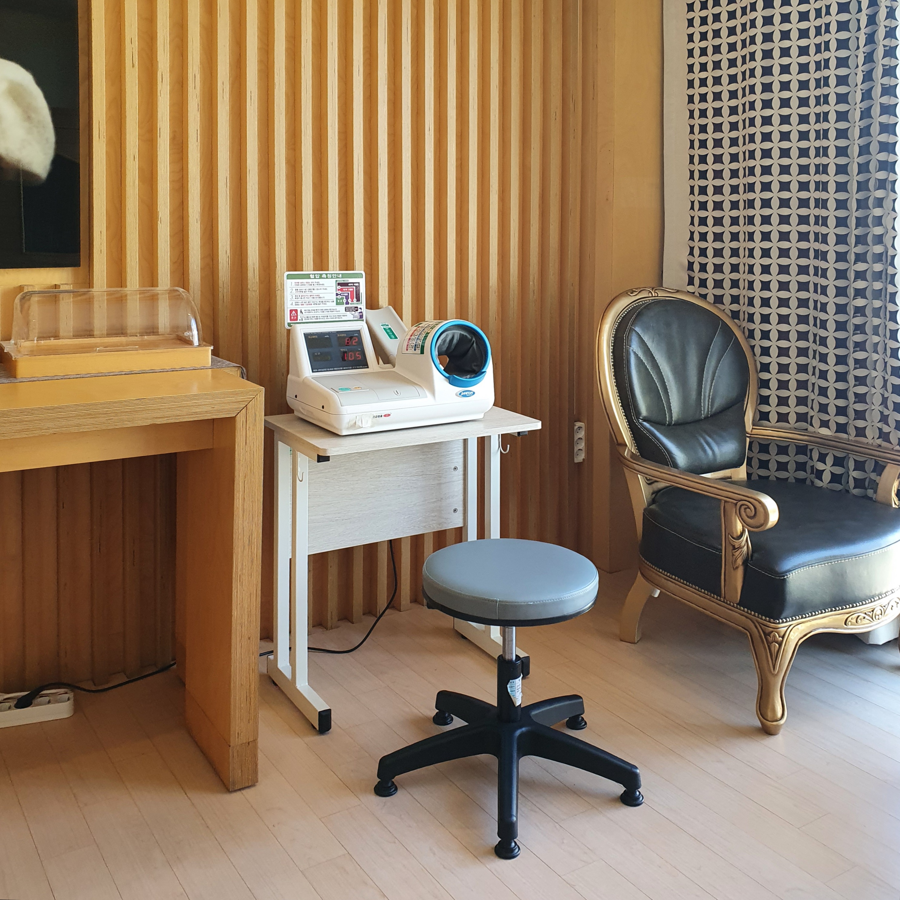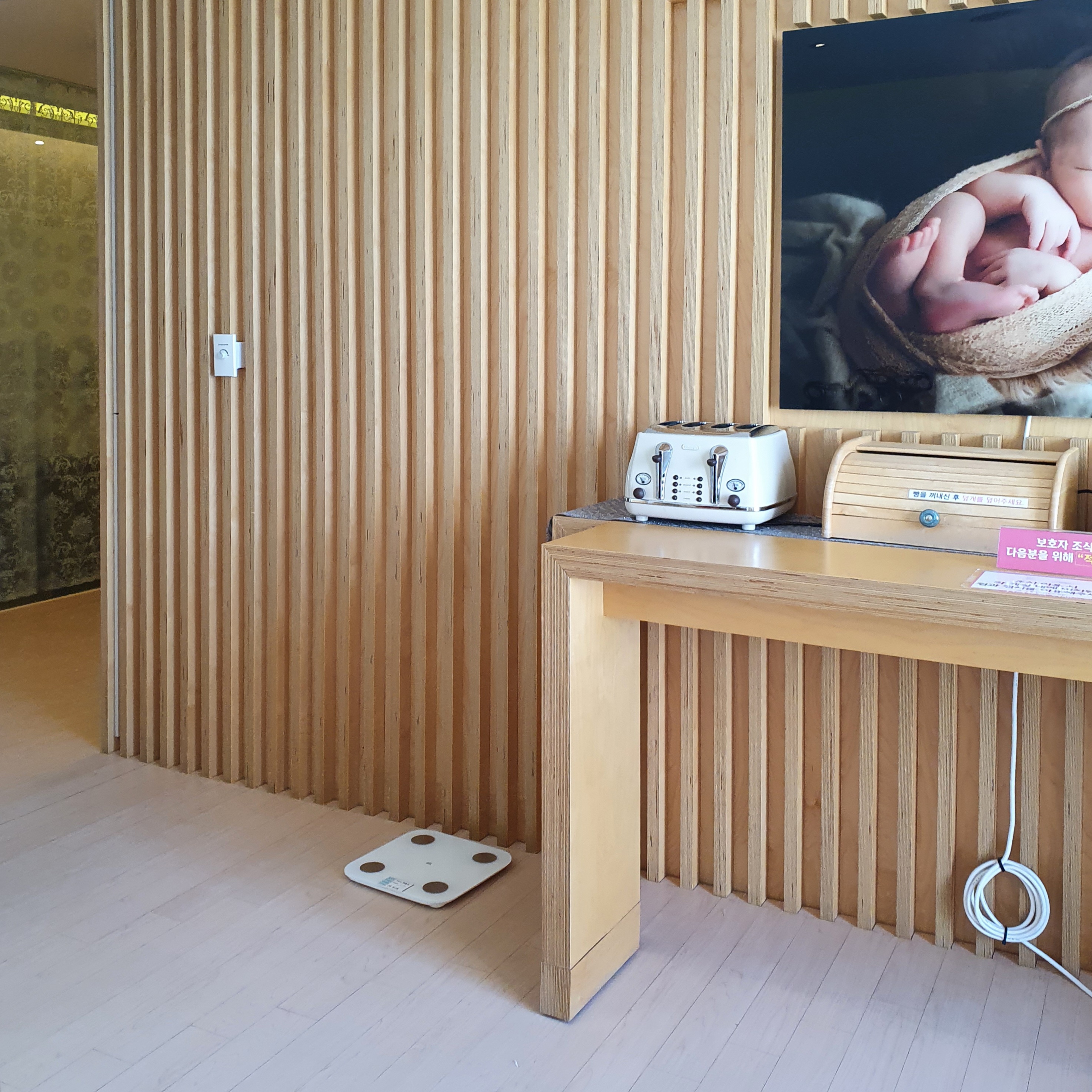 (하루 3번 혈압을 재서 기록해야 했기 때문에 이곳에서 앉아있다가 혈압을 재곤 했었다. 체온은 아침마다 조리원 선생님이 방으로 와 직접 재주시곤 했다.)