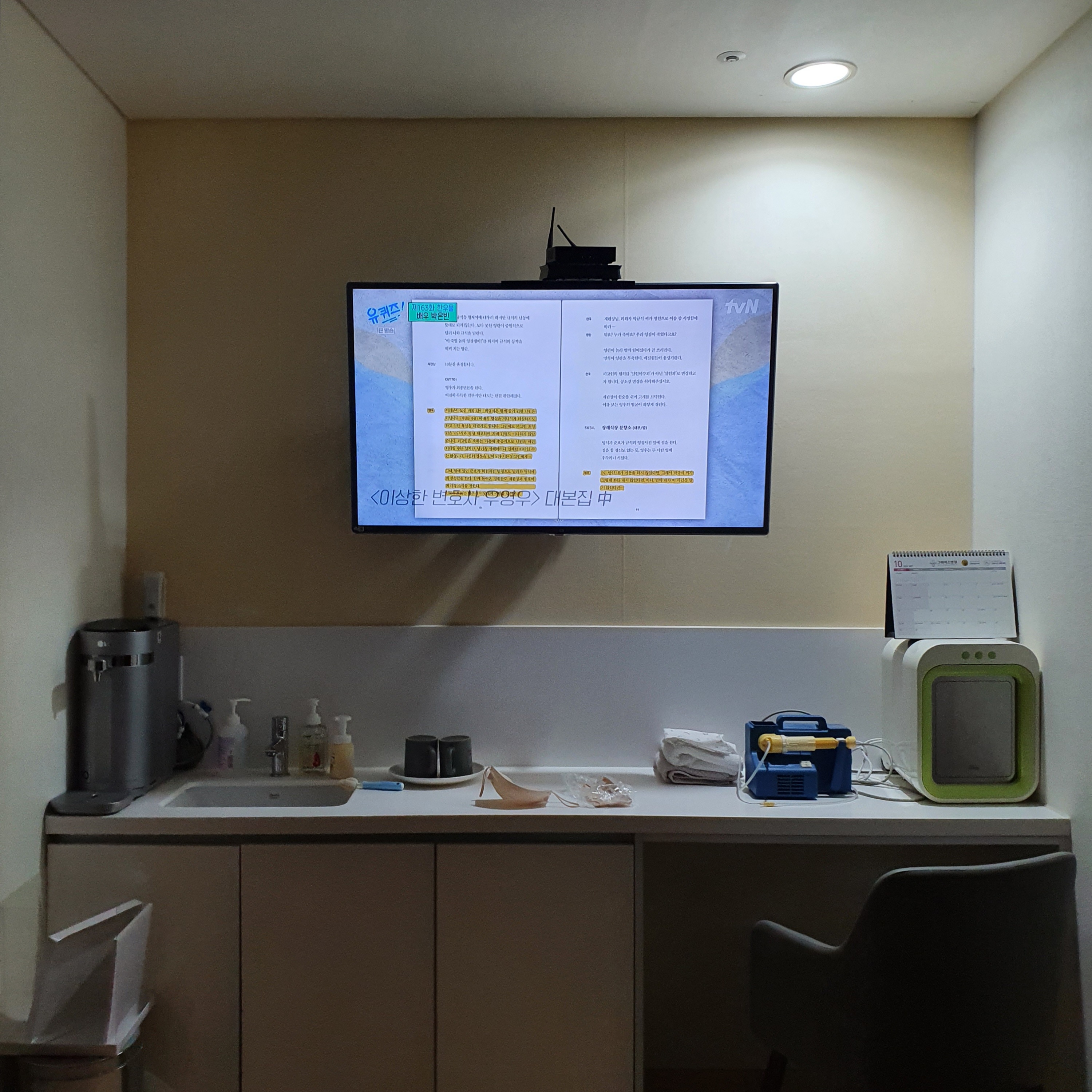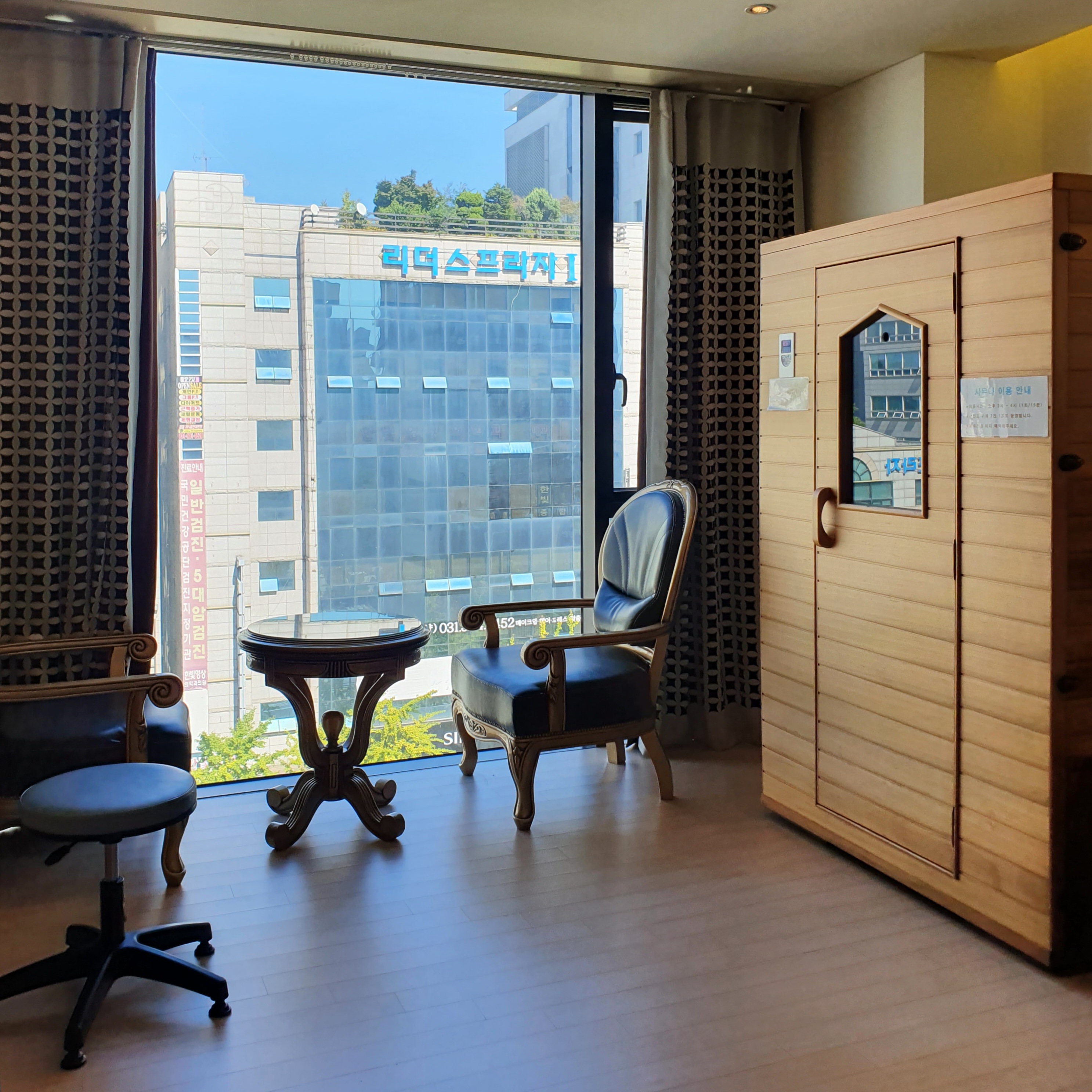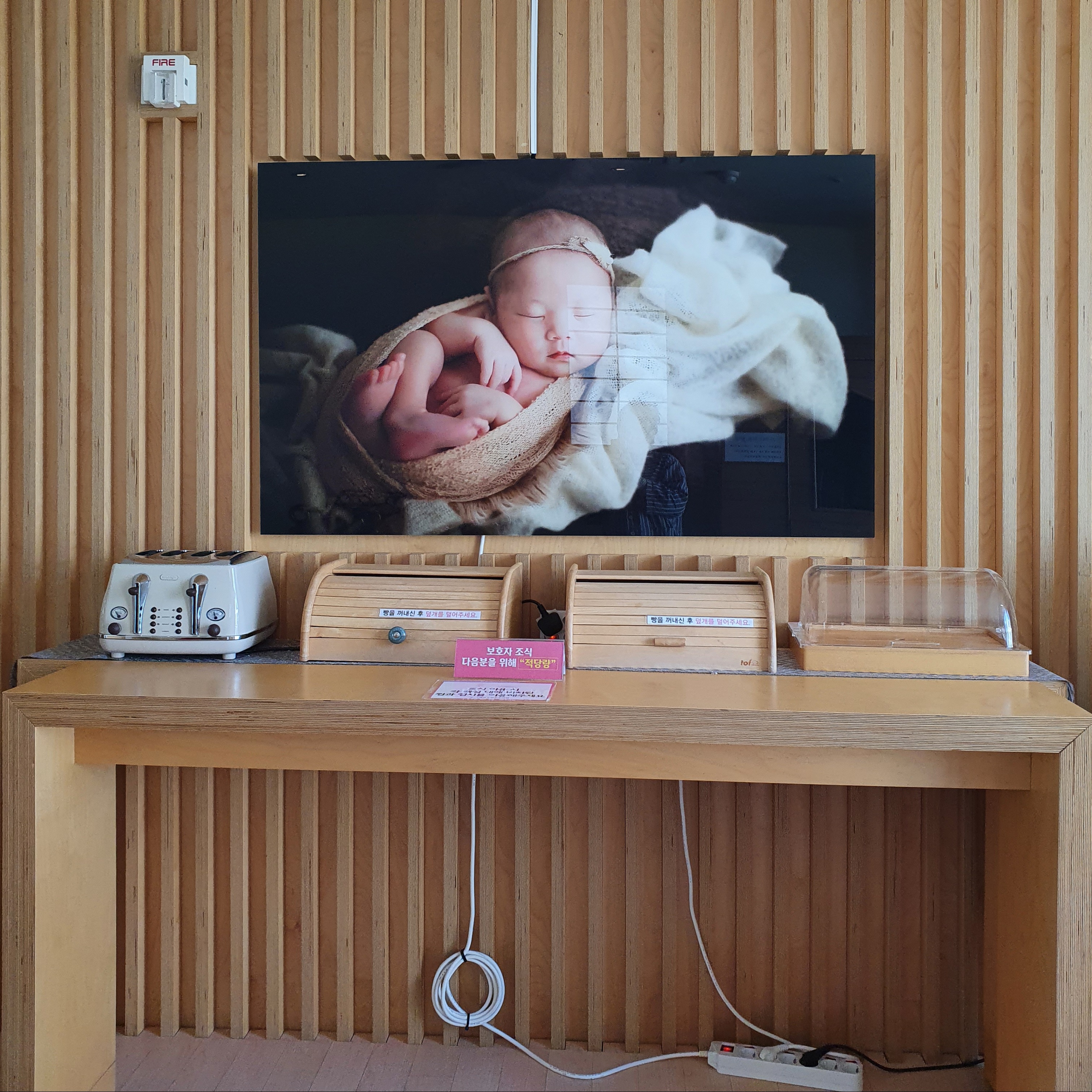 (하루 3번 혈압을 재서 기록해야 했기 때문에 이곳에서 앉아있다가 혈압을 재곤 했었다. 체온은 아침마다 조리원 선생님이 방으로 와 직접 재주시곤 했다.)