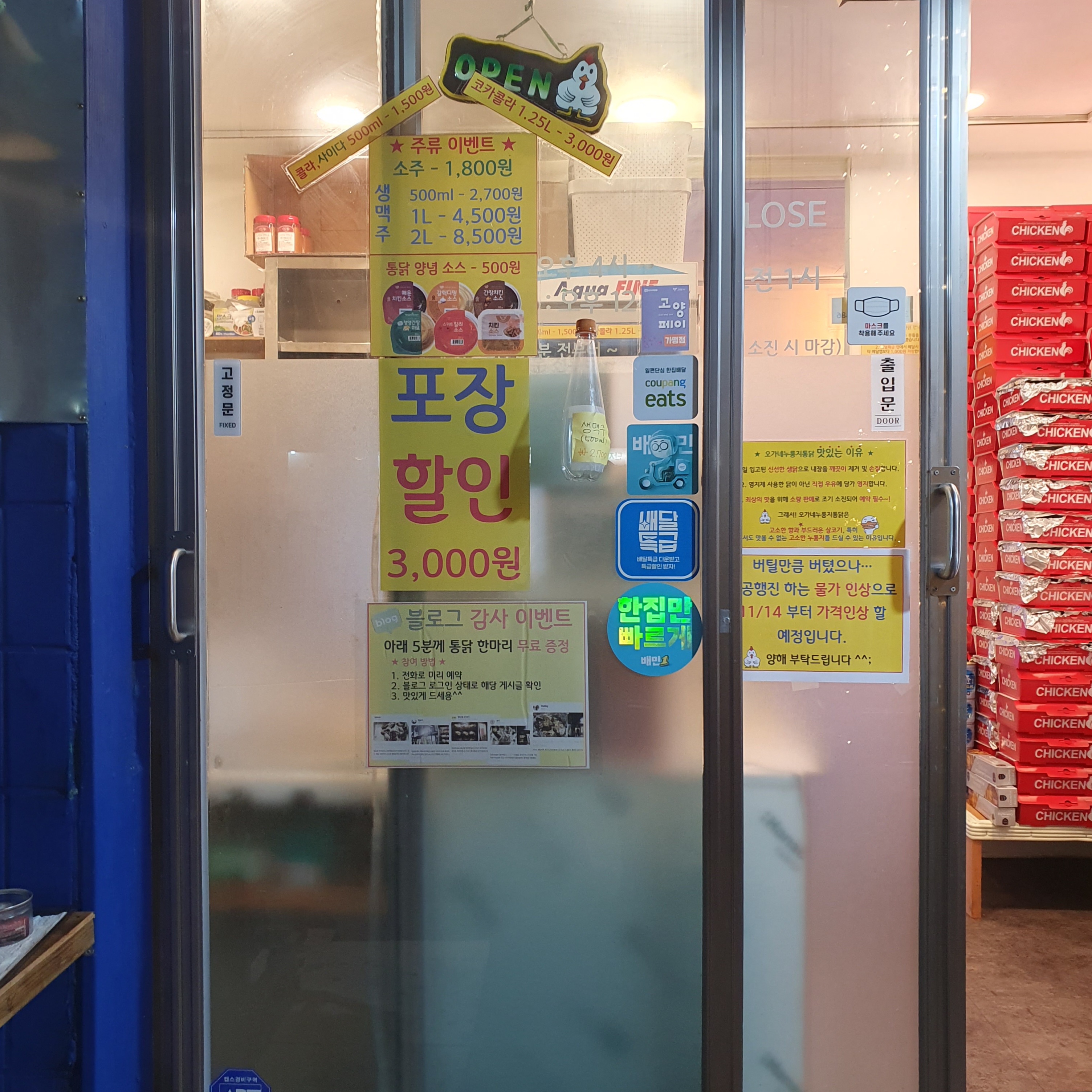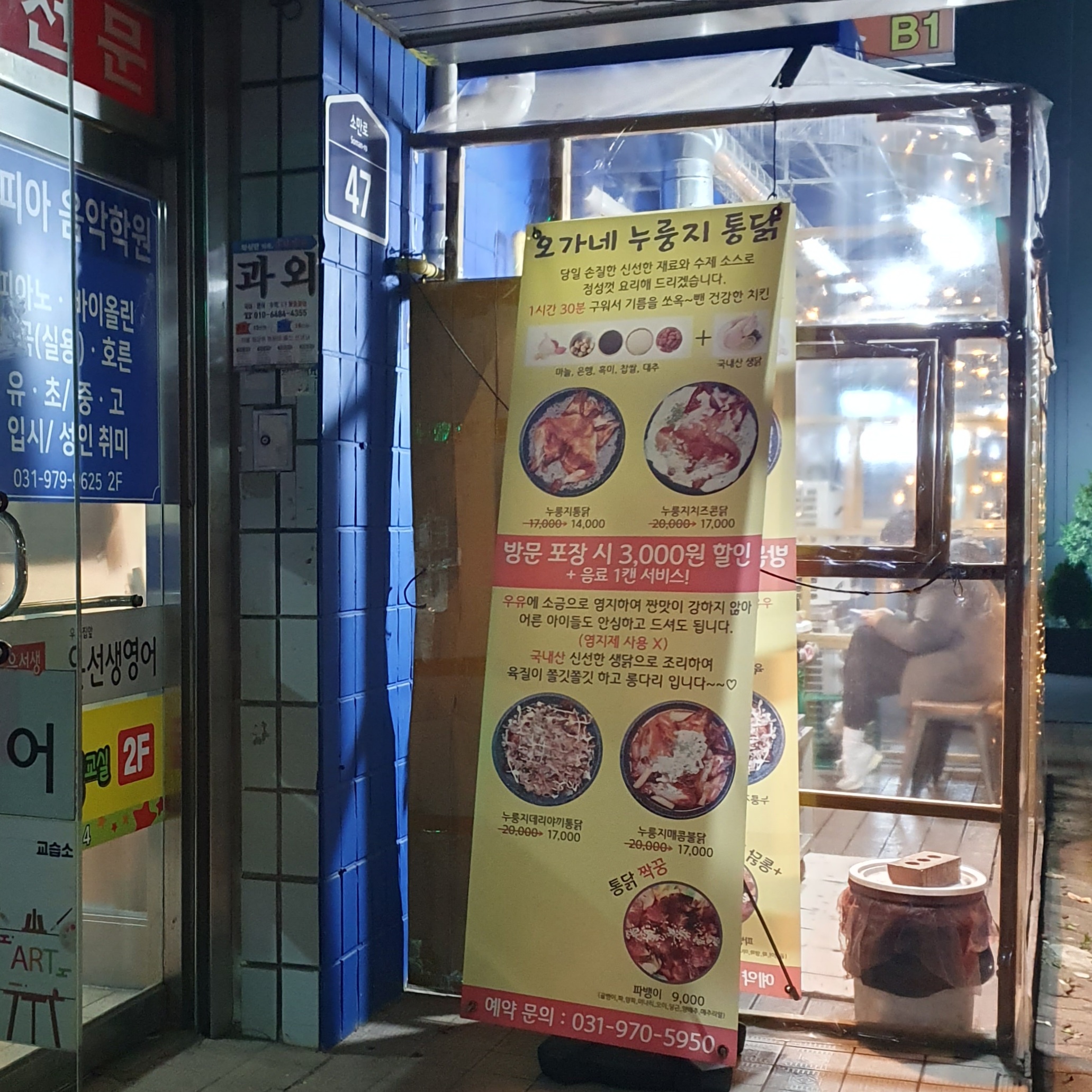 집 근처에 누룽지통닭집이 있던 게 생각나서 배달이 아닌 포장을 위한 방문을 해보았다.